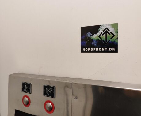 Medlemmer fra Rede 1 har opsat klistermærker i Brædstrup.
