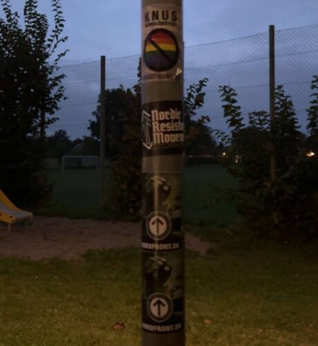 Aktivister fra Rede 1 har opsat klistermærker i plakater i Silkeborg og Grauballe.