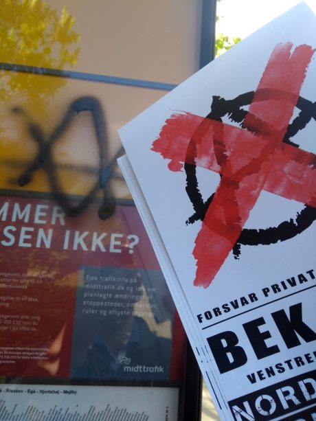 AKTIVISME: Venstreekstremistisk hærværk i Århus blev prompte fulgt op af Den Nordiske Modstandsbevægelses opfordring til at bekæmpe rød terror.