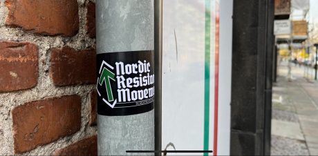 Aktivister har opsat klistermærker fra Den Nordiske Modstandsbevægelse på Frederiksberg.
