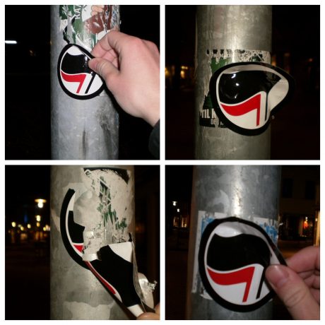 AKTIVISME: Aktivister fra Den Nordiske Modstandsbevægelse gennemførte en større oprydningsaktion i Randers, hvor folkefjendtlig propaganda i form af klistermærker fra Antifa blev pillet ned.