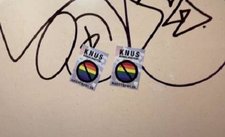 Medlemmer af Modstandsbevægelsen har opsat klistermærker i København.