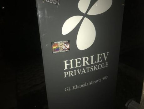 Torsdag nat blev der opsat klistermærker imod homolobbyen omkring Herlev privat skole